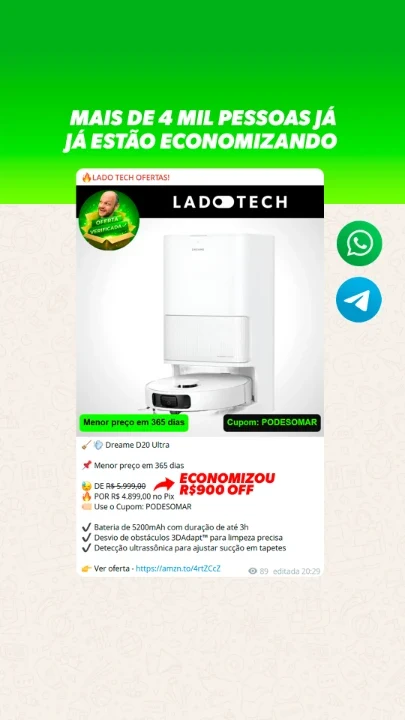 "Economizei R$ 310 na compra do meu aspirador robô graças ao grupo"